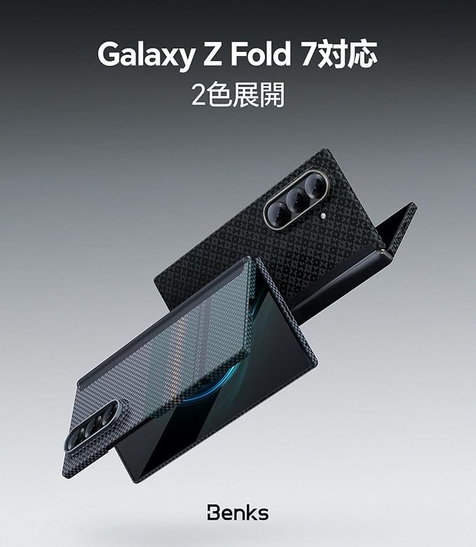 【绞罗工芸・織り目美学】Benksの独自の绞罗工芸によって、シンプルな糸を組み合わせ、鮮やかで多彩なアラミド繊維パターンを織り上げています。これにより、スリムでダイナミックな仕上がりとなり、サムスンZ Fold 7を芸術性と精密なクラフトマンシップが融合した存在感のある一台へと引き立てます。