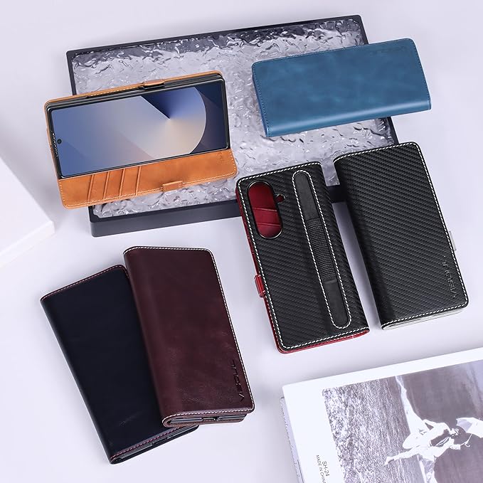 VISOUL Galaxy Z Fold 7 対応 ケース 手帳型 本革 サイドグネット式 ギャラクシー Z Fold 7スマホケース Samsung レザーケース 折りたたみ カード収納 耐衝撃 スタンド付き カーボンレザー ブラック レッド Galaxy Z Fold 7