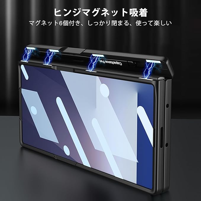 Galaxy Z Fold7 ケース【ペン付き】ギャラクシーz フォールド7ケース【ガラスフィルム付き】レンズ保護/スタンド機能/磁気ヒンジ/耐衝撃/汚れ防止/おしゃれ/落下防止全身保護カバー (ブラック)