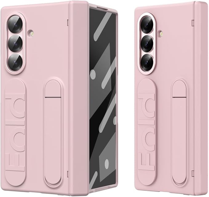 【Galaxy Z Fold7専用】折り畳みケース マットの表面 強化ガラス製外画面保護フィルム シリコングリップ 隠蔽式マルチスタンド機能 ヒンジ保護 金属カメラガード ワイヤレス充電対応 全包囲PC マルチスタンド付属 人気 衝撃吸収 多層構造 指紋防止 軽量 薄型 携帯 手帳型 おしゃれ Beautycatchear - ピンク