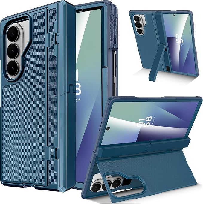 Miimall 対応 Galaxy Z Fold 7ケース ヒンジ保護 キックスタンド付き 耐衝撃 軍用規格 多機能保護カバー 滑り止めケース 折り畳み式 ワイヤレス充電可能 おしゃれ 超薄型 サムスンZフォールド 7スマホケース(ブルー)