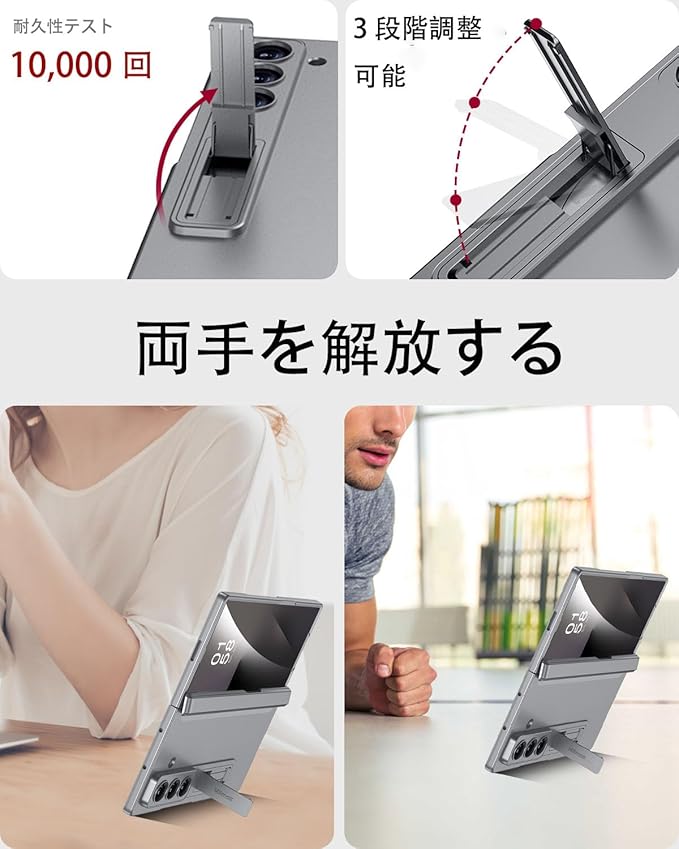 【マグネットで安定・使いやすさ】対応galaxy z フォールド7 ケース。強力なマグネットを搭載し、ヒンジ部分にしっかり吸着。外れにくく、開閉がスムーズで折りたたみ機能に影響を与えません。スタンド付きで角度調整が簡単で、さまざまなシーンで快適に使用できます。