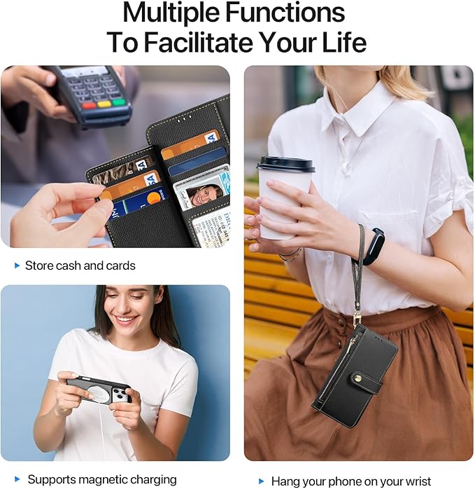 【2025新登場・2in1分離式・財布一体型】iPhone 17 Pro Max 用の 手帳型ケース 2in1分離式 本革 財布一体型 ファスナー ポケット付き 取り外し自由 2way アイホン17 Pro Max プロマックス 携帯カバー 大容量カード収納 横置きスタンド機能 衝撃吸収 全面保護 ハンドストラップ付き MagSafe対応 スマホケース(iP17Pro Max、ブラック)