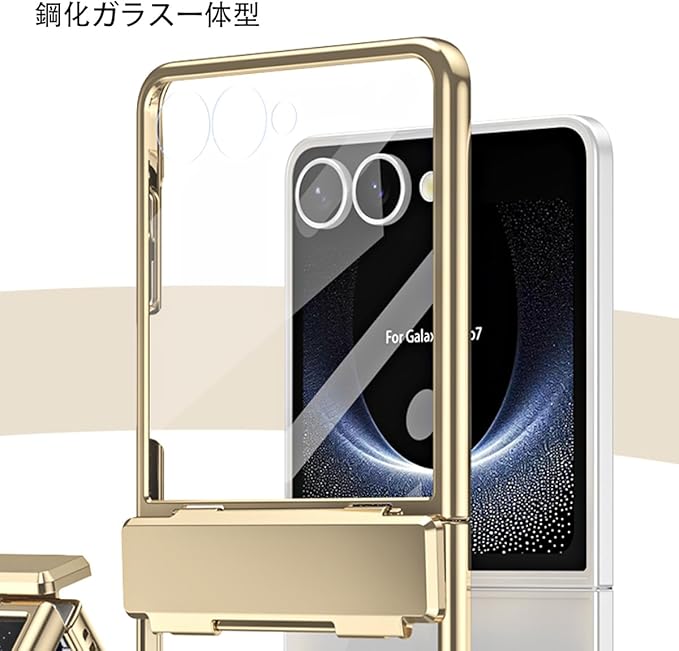 【Galaxy Z Flip7専用】手帳型ケース 透明デザイン 電鍍フレーム 鋼化ガラス一体型 360度防護 超薄軽量折りたたみ ワイヤレス充電対応 ヒンジ保護 カバー キラキラ おしゃれ 衝撃吸収 折り畳み 人気 滑り防止 面白い フリップ かわいい Beautycatcher - 金
