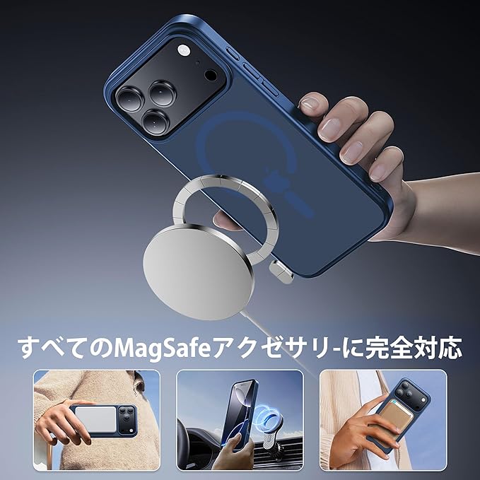 【米軍規格・MagSafe対応】Gtsoho iPhone 17 Pro Max 用 ケース 半透明 マグネット搭載 ワイヤレス充電 耐衝撃 耐久性 全面保護 黄ばみなし ストラップホール付き イフォン 用 カバー マグセーフ対応 ネイビー