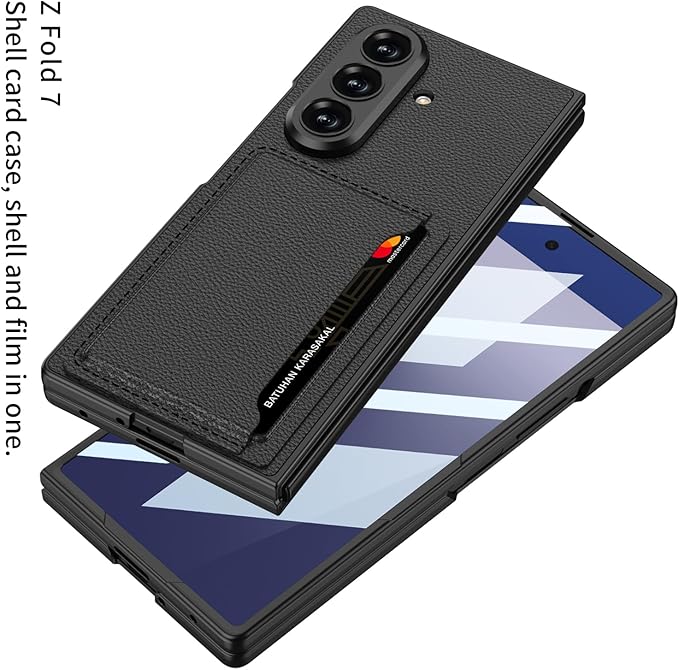 スマホ携帯ケース【Galaxy Z Fold7専用】超薄軽量磁気カードホルダー付き 強化ガラス一体型 ワイヤレス充電対応 多機能スタンド 防指紋加工 レンズ保護 手帳型 カバー 360度防護 落下防止 人気 耐汚れ 耐衝撃 折り畳み 面白い おしゃれ Beautycatcher - 黒