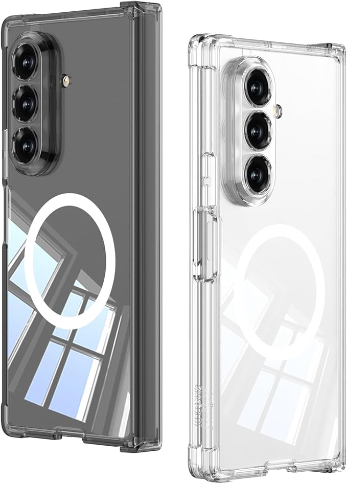 本製品はGalaxy Z Fold7専用設計の透明手帳型ケースです。高透過性PC素材の全包囲構造が360度防御を実現し、エアバッグ構造強化の四隅が衝撃吸収性能を向上。ヒンジ部の独立保護カバーが開閉動作を安定化、前面一体型ガラス層が外画面を常時保護します。超薄軽量設計で装着感を最小化し、磁気構造内蔵により全ワイヤレス充電器と互換性を確保。精密加工による隆起設計がカメラ保護を強化します。