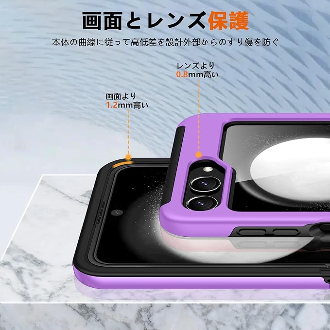 【全面保護】ソフトなTPU(シリコン)とハードなPC(ポリカーボネート)を組み合わせた2重構造方式です。フチが高低差を設計し、液晶画面とカメラレンズをキズから保護します。品質のTPUを採用し、携帯電話の落下時に受けた衝撃力を分散させ、携帯電話を有効に保護する。柔らかい素材のため、着脱も簡単で、スマホ本体への擦り傷も心配無用です