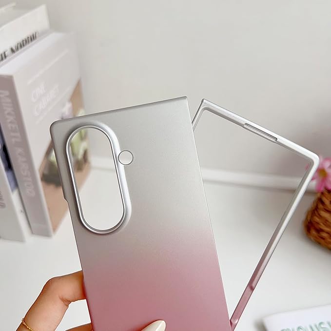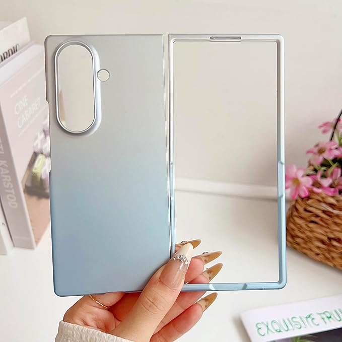 【Galaxy Z Fold7専用】超薄メタリックグラデーションケース 360 全周保護&ワイヤレス充電対応 軽量 マットの表面 人気 携帯電話 カバー レンズ保護 滑り防止 指紋防止 スマホ 可愛い 面白い おしゃれ フリップ Beautycatcher - 銀-空色