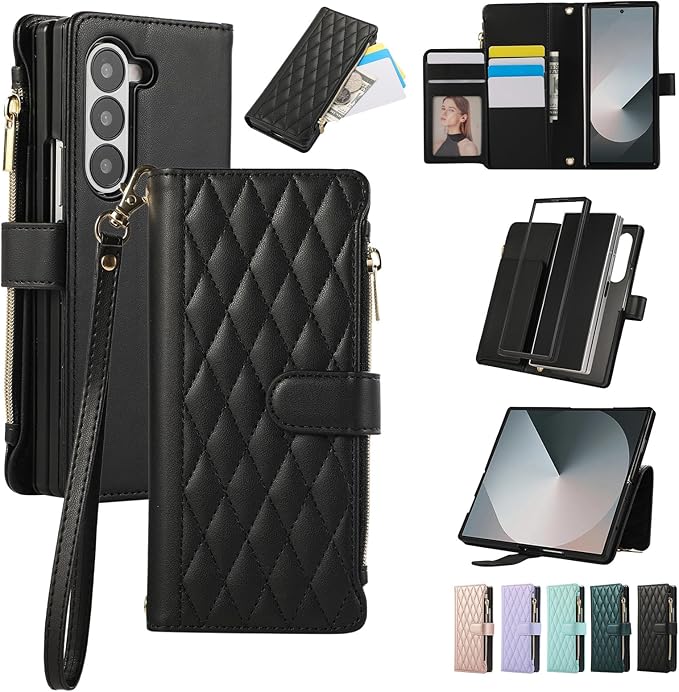 For Samsung Galaxy Z Fold 7 ケース 手帳型 ギャラクシーZフォールド7 / SC-56F / SCG34 スマホケース ショルダー ファスナー SC56F カード ストラップ GalaxyZFold7 カバー 財布型 スタンド機能 チャック付き 小銭入れ RFIDブロッキング 耐衝撃 おしゃれ - ブラック