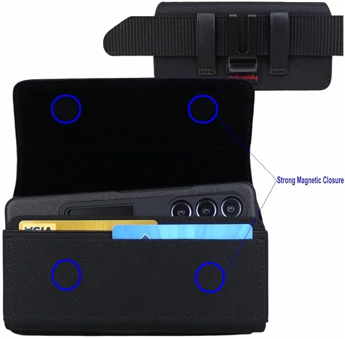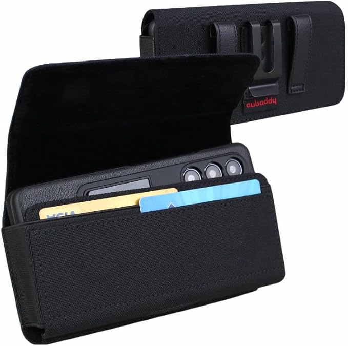 Aubaddy ナイロン携帯電話ホルスター ベルトクリップとベルトループ付き 携帯電話ベルトケースホルダーポーチ Samsung Galaxy Z Fold 3/4/5/6/7用 カードスロット内蔵 強力なマグネット開閉 ブラック
