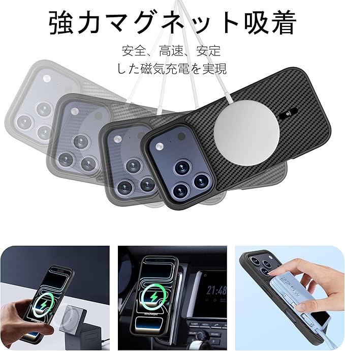 【米軍MIL規格・Magsafe対応】ONES iPhone 17 Pro Max 用 ケース カーボン調 薄型 耐衝撃 画面 レンズ保護 碳素繊維テクスチャ 滑り止め 防汚 Qi充電 軽量 高磁力マグセーフ対応 カバー