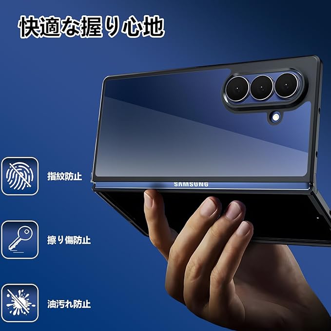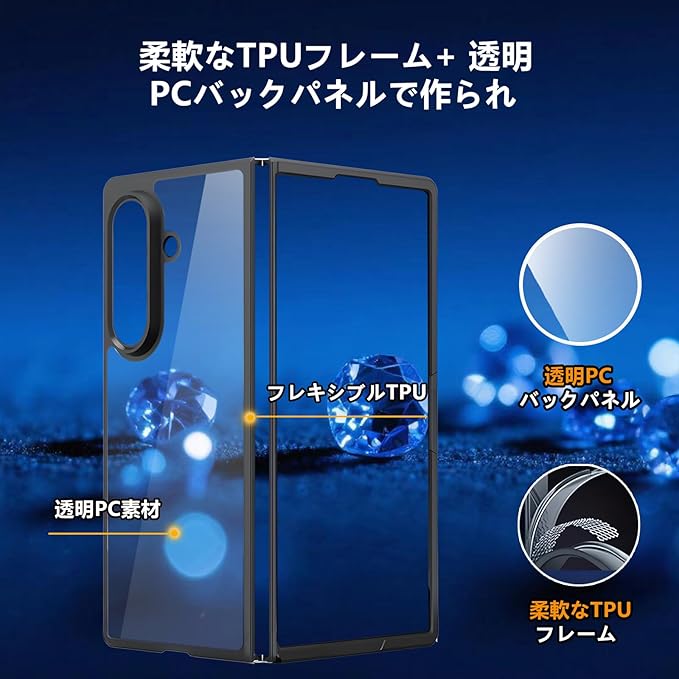 Galaxy Z Fold7 SC-56F ケースクリア ギャラクシー Z Fold7カバー 黒色TPUフレーム+透明PCバックパネル 2重構造 耐衝撃 米軍MIL規格 レンズ保護 滑り止め 透明 指紋防止 黄ばみ防止 SC-56F Galaxy z fold7カバー クリア