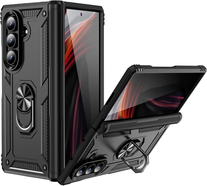 EDu Galaxy Z Fold7 ケース ギャラクシーゼットフォールド7ケース リング付き スタンド機能 ヒンジ保護 耐衝撃 純正 傷防止 レンズ保護 落下防止 ブラック