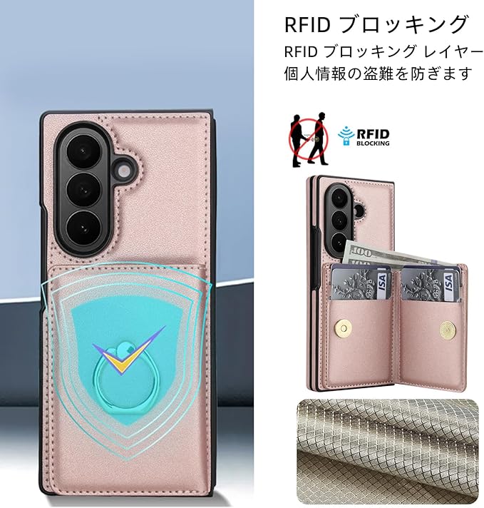 RFIDブロック機能:お客様の財産の安全を守ることは私たちの最優先事項です。そのため、携帯ケース GalaxyZFold7 手帳型は内部に耐磁性干渉材料を使用するだけでなく、「RFIDシールド機能」のセキュリティ対策も備えており、重要な個人情報を保護します