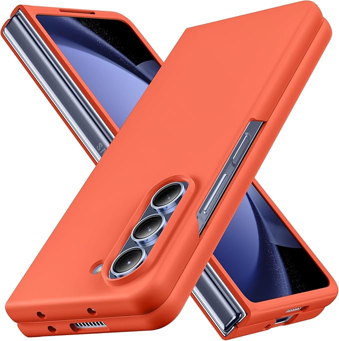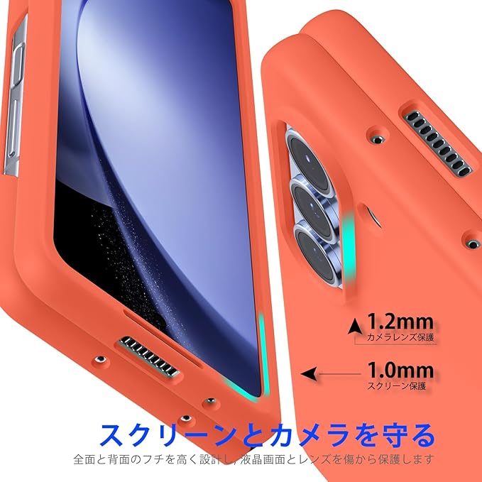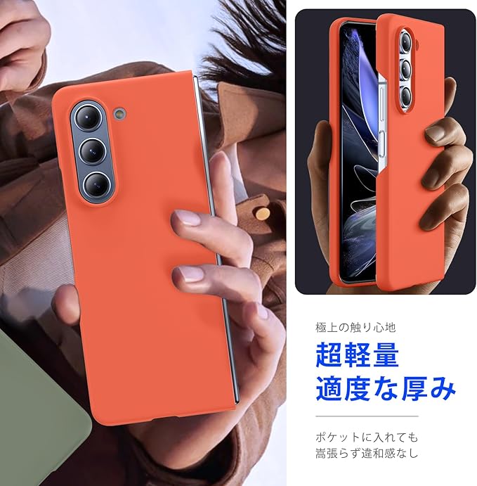 対応 Galaxy Z Fold5 用の ケース リング 耐衝撃 PC 薄型 おしゃれ カメラ保護 軽量 Z Fold5 カバー らさら肌触り フィッ 着脱簡単 指紋防止 軽量 薄型 擦り傷防止 オレンジC94-zfold5-07