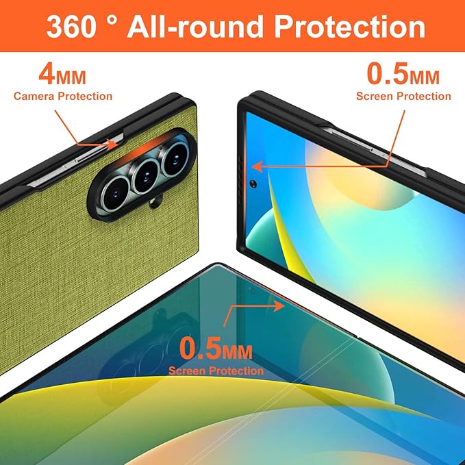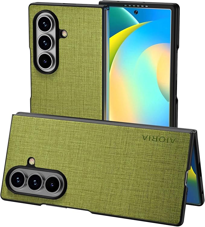 Aioria 互換性 ケース for Samsung Galaxy Z Fold 7 Fold7 5G 生地パターンレザー高級に保護純色スマホケース (Green, Z Fold 7)