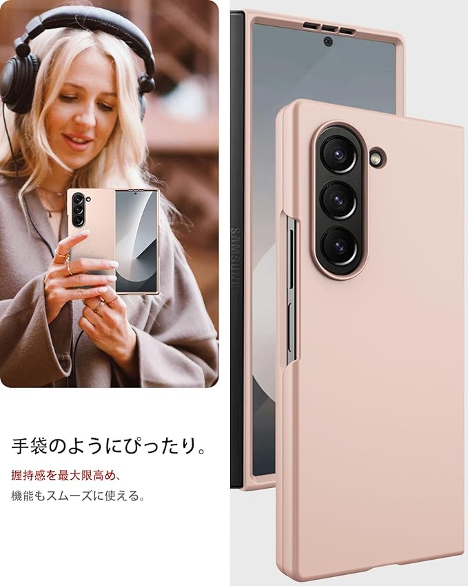 【超薄軽量】Z Fold7 に最適化されたスリムケースは、装着しても存在感を感じさせないほどの優れたグリップ性を持ち、スタイリッシュなデザインを実現しています。まるでケースをつけていない裸の状態のような軽さが特徴で、ポケットに入れてもかさばらず、持ち運びが非常に便利です。