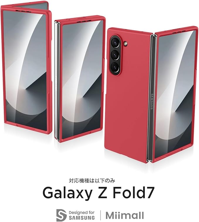 Miimall 対応 Galaxy Z Fold 7 カバー フィルム付き極薄 耐衝撃 Z Fold 7 保護カバー 女性向け 防塵 滑り止め 軍規格 耐久性 ワイヤレス充電 スマホケース Z フォールド7 携帯ケース Case(赤)