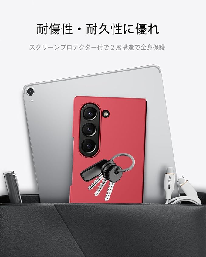 【超薄軽量】Z Fold7 に最適化されたスリムケースは、装着しても存在感を感じさせないほどの優れたグリップ性を持ち、スタイリッシュなデザインを実現しています。まるでケースをつけていない裸の状態のような軽さが特徴で、ポケットに入れてもかさばらず、持ち運びが非常に便利です。