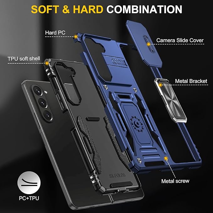 Galaxy Z Fold7 対応 ケース リング付き スライド式カメラカバー 耐衝撃 スタンド機能 車載ホルダー レンズ保護 ギャラクシーZ フォールド7 対応 スマホケース PC TPUバンパー 防塵 人気 落下防止 滑り止め 指紋防止 携帯カバー ネイビー K318