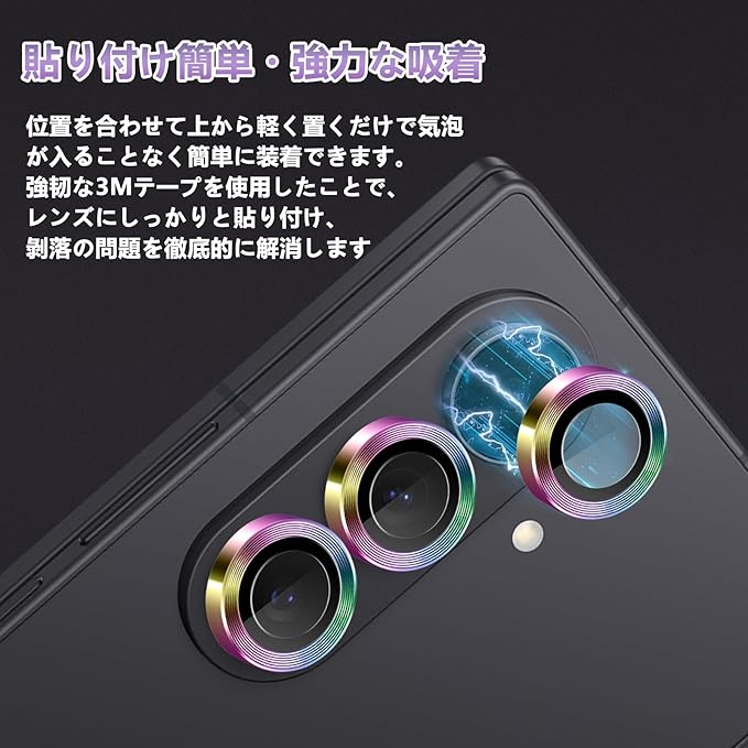 【対応機種】Samsung Galaxy Z Fold7に対応カメラ保護フィルムです。ご注意: 1. 取り付け中は、フィルムが完全に貼り付け後、2分間ぐらい強く押す必要があります、粘着剤が完全にカメラに貼る前、ポケットとかカバンに入れる時、引っかけないでください。2. 貼り付けの過程で、レンズ保護フィルムの接着に影響を与えるため、繰り返し取り外して貼り付けないでください