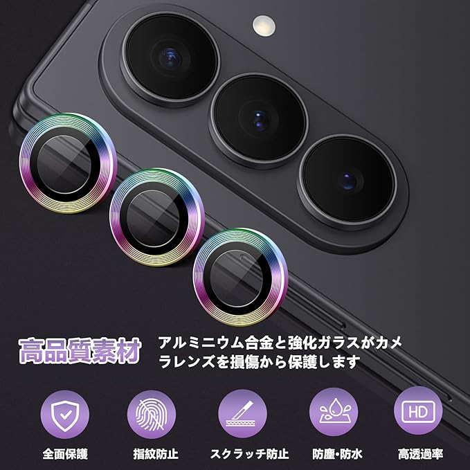 Samsung Galaxy Z Fold7 カメラフィルム レンズカバー 金属 ケース 独立型 galaxy z fold7 カメラ保護フィルム ギャラクシーZ フォールド7 カメラフィルム アルミ合金 高透過率 露出オーバー防止 耐衝撃 防塵 全面保護 薄型 強化ガラス Galaxy Z Fold 7 用 レンズフィルム(Multi-Coloured)