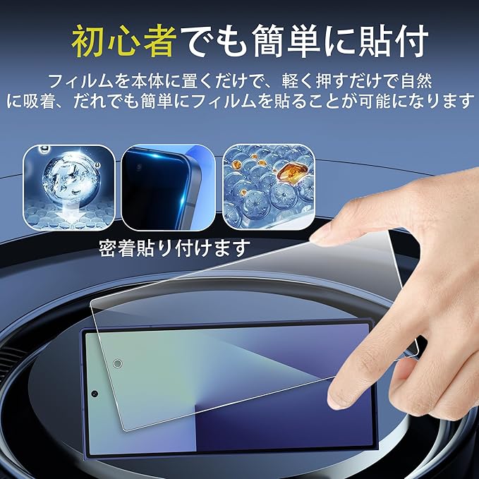 【誰でも簡単貼り付け、気泡ゼロ、】保護ガラス 位置合わせ・貼り付けがしやすいように工夫しており、ガラスを液晶に置くだけで自動的に吸着します。気泡も自然に抜けていくので、誰でもきれいに貼ることができます。初心者でも完璧にこなせるため、失敗を心配せずに貼り付けられます