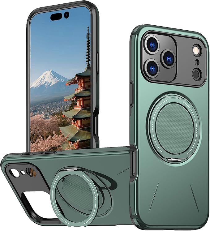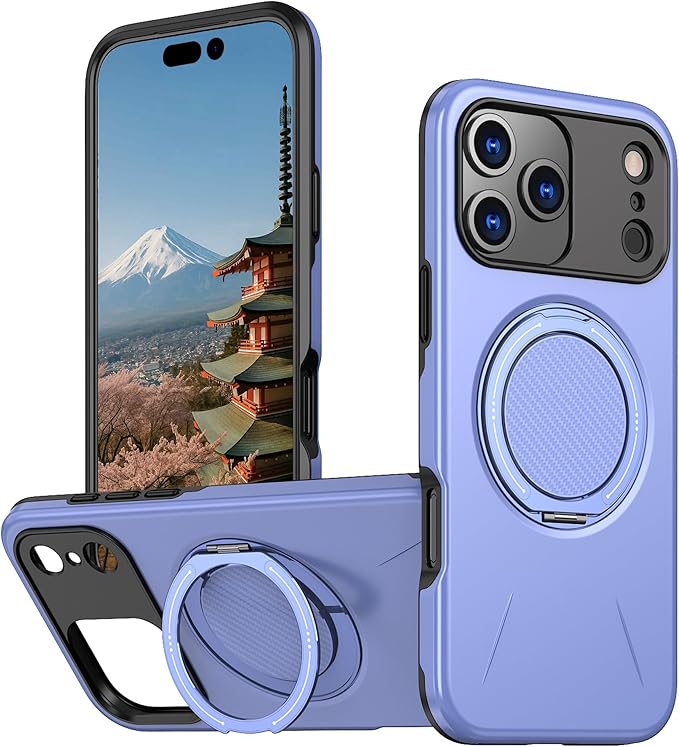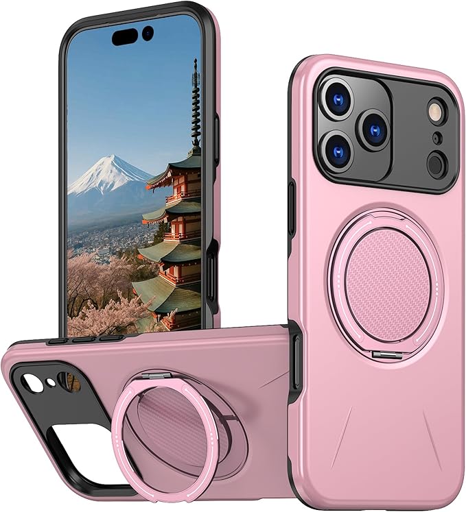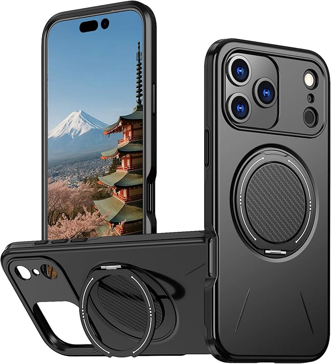 iPhone 17 Pro Max 用 ケース MagSafe対応 360 回転スタンド リング付き マットカラー 米軍規格 耐衝撃 カメラ保護 マグネット搭載 ワイヤレス充電対応 軽量 ストラップホール付き (ブラック)