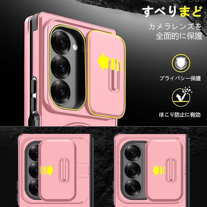 対応 Galaxy Z Fold7 用 ケース スタンド付き リング付き 耐衝撃 レンズ保護 スライドカメラカバー TPU+PC 軽量 滑り止め 落下保護 スタンド機能 車載ホルダー対応 ギャラクシー Z フォールド7 5G 携帯ケース ピンク R-LK-Fold7-05-CP