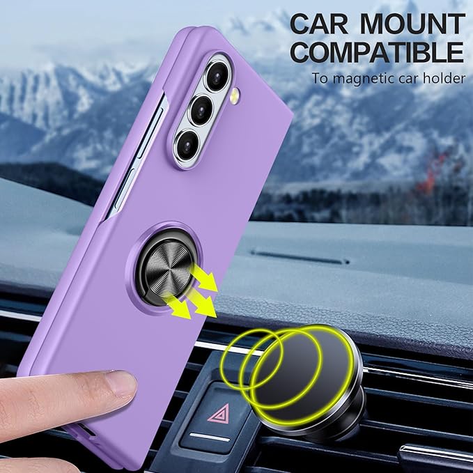 Galaxy Z Fold3 用ケース リング付き スタンド機能 レンズ保護 一体型 SC-55B SCG11 スマホケース ハード PC素材 マットな質感 サムスン ギャラクシーZ Fold3 5G 用ケース 衝撃吸収 シンプル スマホケース 紫 J07-07