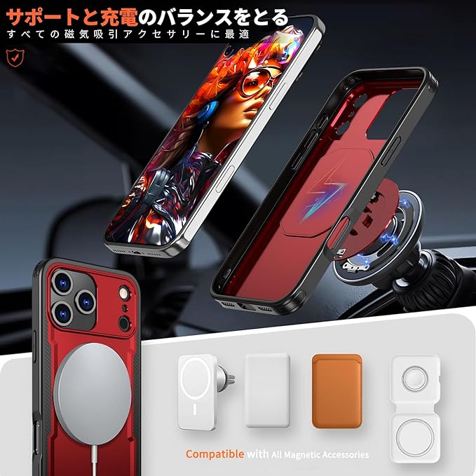 【ワイヤレス充電&マグネット式カーマウントをサポート】:対応ワイヤレス充電、全体的な充電時間を短縮し、ワイヤレス充電体験をさらに向上させます。このケースに内蔵された金属板は簡単に直接マグネット式カーマウントに取り付けることができます。