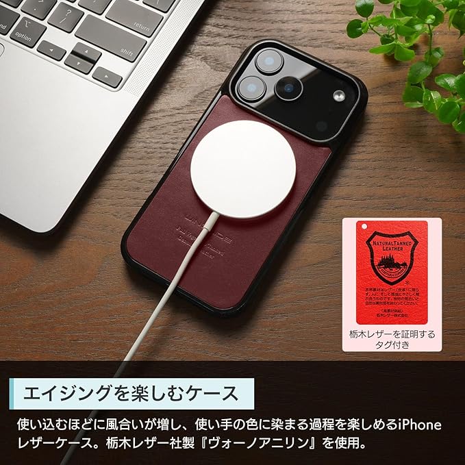【 特徴 】 栃木レザー社製「ヴォーノアニリン」を使用した iPhone 17 Pro Max 向けのレザーケースです。MagSafeアクセサリをご使用いただけます。