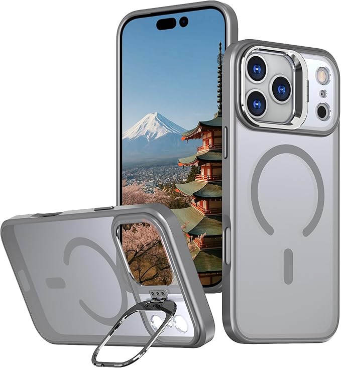 iPhone 17 Pro Max 用 ケース MagSafe対応 180 回転スタンド付き リング付き マットカラー 米軍規格 耐衝撃 カメラ保護 マグネット搭載 ワイヤレス充電対応 軽量 ストラップホール付き (ブラック)