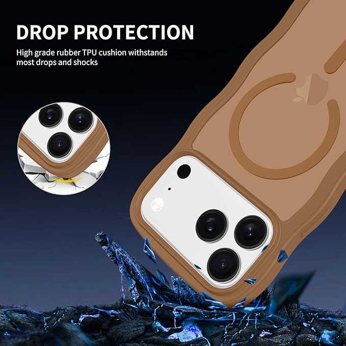Lafunda iPhone 17 Pro Max 用 ケース MagSafe対応 ウェーブ 滑り止め 半透明 マグネットカバー かわいい おしゃれ 耐衝撃 薄型 軽量 ワイヤレス充電 アイフォン 17 Pro Max 用 スマホケース (ブラウン)