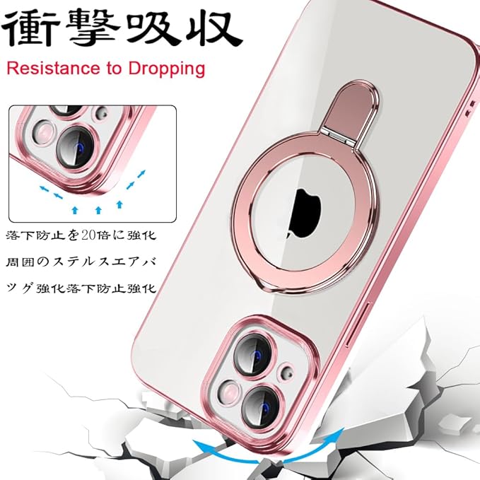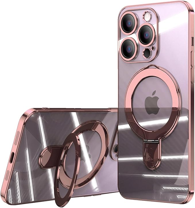 MuZiF iPhone 17 Pro Max 用 ケース MagSafe対応 リング付き クリア メッキ加工 カバー 車載ホルダー対応 多機能 レンズ保護 薄型軽量 耐衝撃構造 透明柔らかいTPU アイフォン17 プロマックス 用 磁気カバー クリアケース(ローズゴールド)