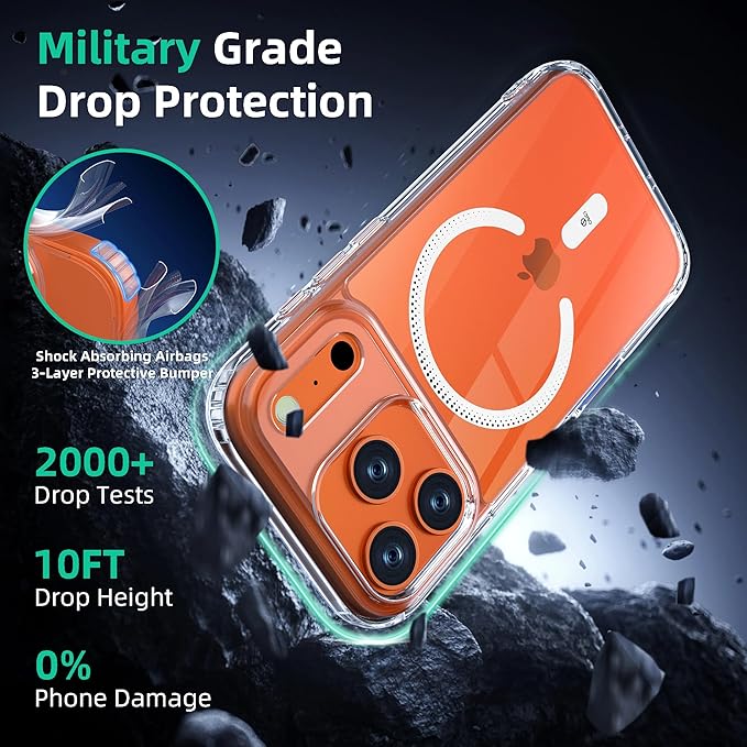 【米軍MIL規格・Magsafe対応】ONES iPhone17 Pro Max 用 ケース クリアカバー 耐衝撃 超軽量 超透明 エアバッグ構造 高靭性PC背面パネル 衝撃吸収TPUバンパー レンズ・画面保護 黄変防止 滑り止め Qi充電対応 マグネット クリア カバー