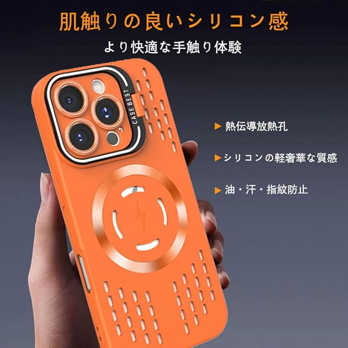 for iPhone 17 Pro Max 用ケース MagSafeアクセサリー対応 スマホケース マグセーフ カバー マ新型カメラスタンドカップルシリカゲルケース隠し携帯スタンドレンズフィルム保護 高放熱 [耐衝撃] [柔軟TPU液体シリコン] [ソフトタッチ] [レンズの全面保護] [指紋防止] [落下防止] [滑り防止]-17PM オレンジ