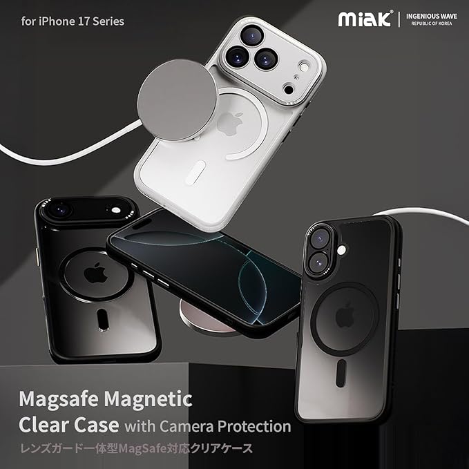 miak iPhone 17 Pro Max 用 レンズガード 一体型 クリアケース MagSafe対応 [ カメラレンズ保護 アルミ合金カメラフレーム 衝撃吸収 エアークッション 耐衝撃 防塵 背面ポリカーボネート TPU ] ブラック MA28081i17PM 【国内正規品】