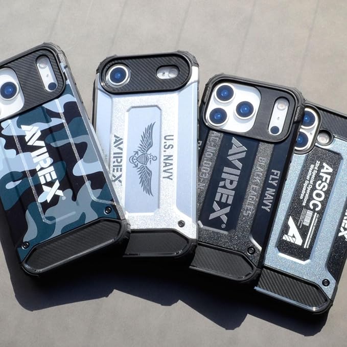 【 AVIREX 正規品 】 iPhone17 Pro Max 対応 ケース 耐衝撃 米軍MIL規格「 アーミータフ 」 アヴィレックス 背面 アイフォン17プロマックス用 iPhone 17Pro Max用 ブランド スマホケース (ブルー)