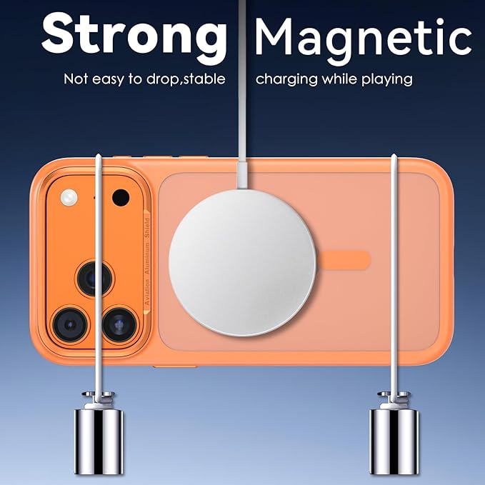 CloudValley iphone 17 Pro Max 用 ケース ワイヤレス充電をサポート TPUとPCの資料 耐衝撃 滑り止め スリムフィットカバー カメラ保護ケース ブラック (橙色)