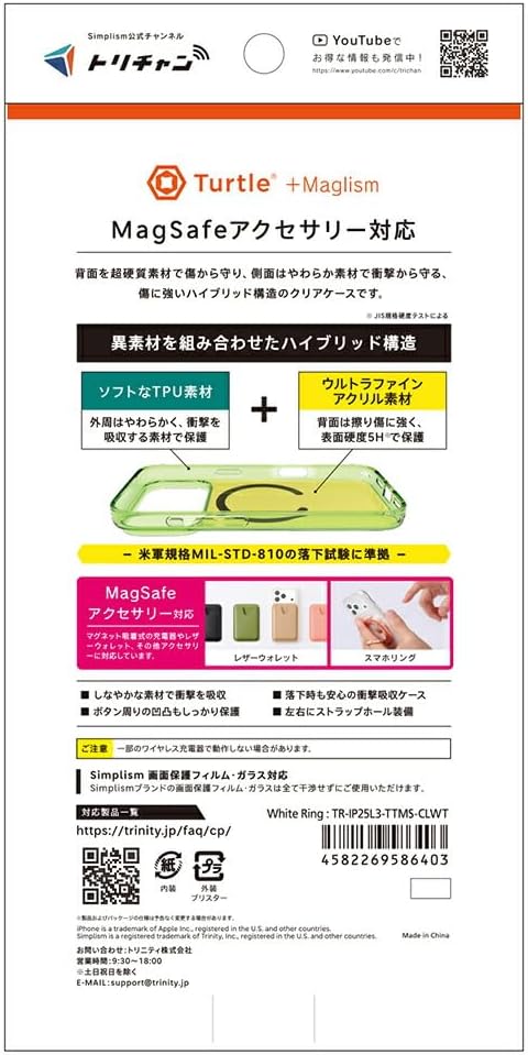 Simplism シンプリズム iPhone 17 Pro Max [Turtle] MagSafe対応 ハイブリッドクリアケース TR-IP25L3-TTMS-CLWT