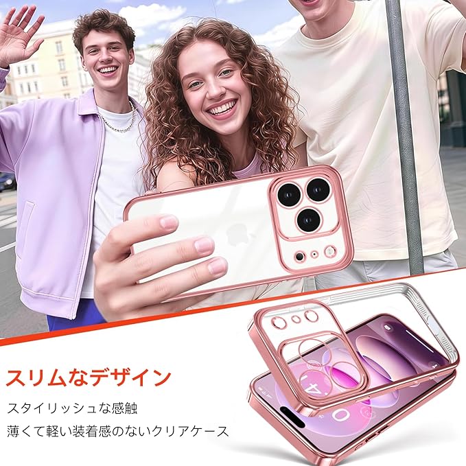 【高透明度&薄くて軽量】99%に持ち上げた透明感がiPhone17 Pro Maxの美しさをそのまま。フレームは多層メッキ加工技術によって設計、オシャレで独特の輝きを放ち、本来の崇高な美しさと高級感を損なわなく、いつものスマホに上品さをプラス。薄型で軽いデザインで、長く持っても手が疲れる感じもありません。まるでケースを付けていないかのような質感。