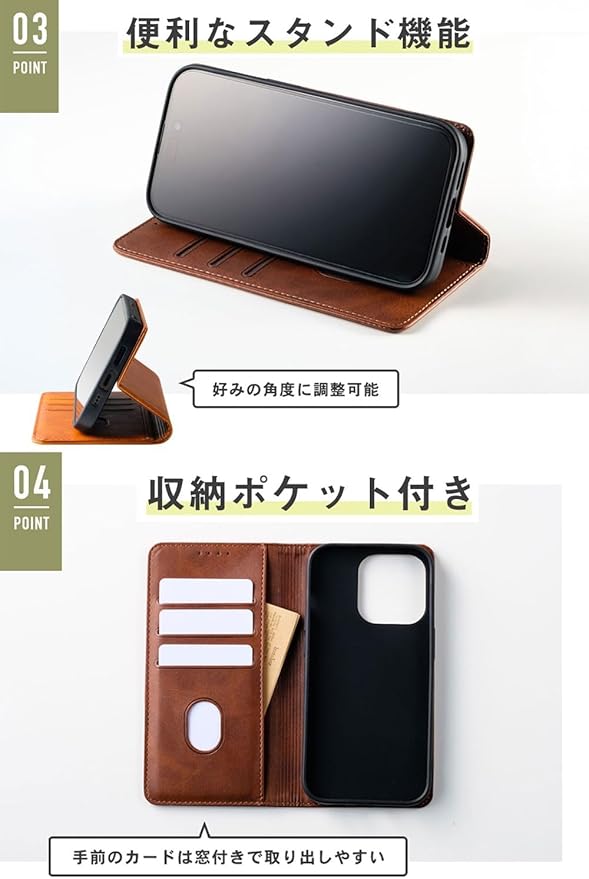 【使いやすさとスマホ保護を徹底した、高級感のある手帳型ケース】カード収納やスタンド機能で日常使いに便利なだけでなく、スマホやカメラレンズを衝撃や傷から保護するシンプルなデザインと上質な素材であらゆるシーンに適合する洗練されたスタイルを演出できます。