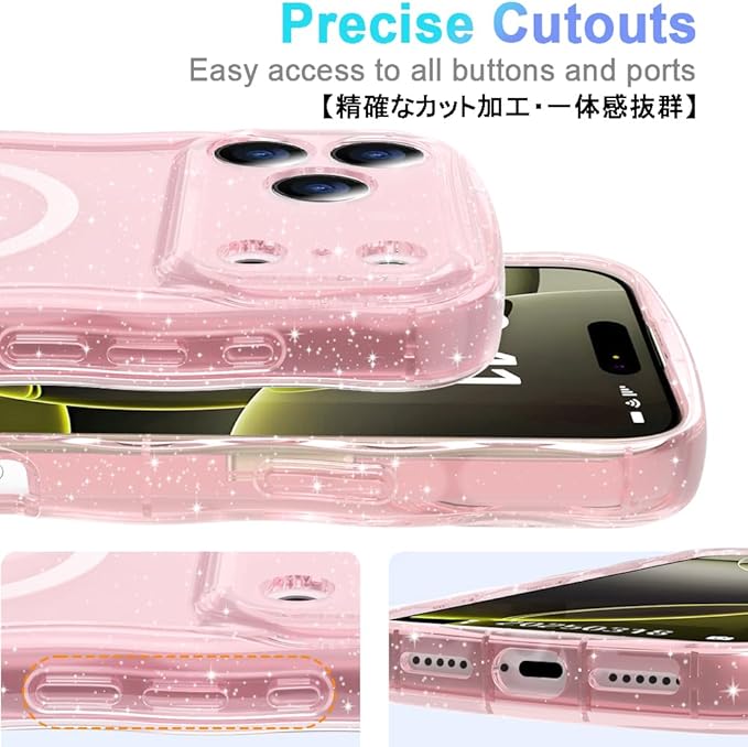 JOOBOY スマホケース 対応 MagSafe対応 クリア 透明 キラキラ フラッシュ ウェーブエッジ 波形 おしゃれ かわいい 高級なTPU素材 TPU+PCパネル ハード 保護カバー 衝撃吸収 ストラップホール付き 携帯電話カバー