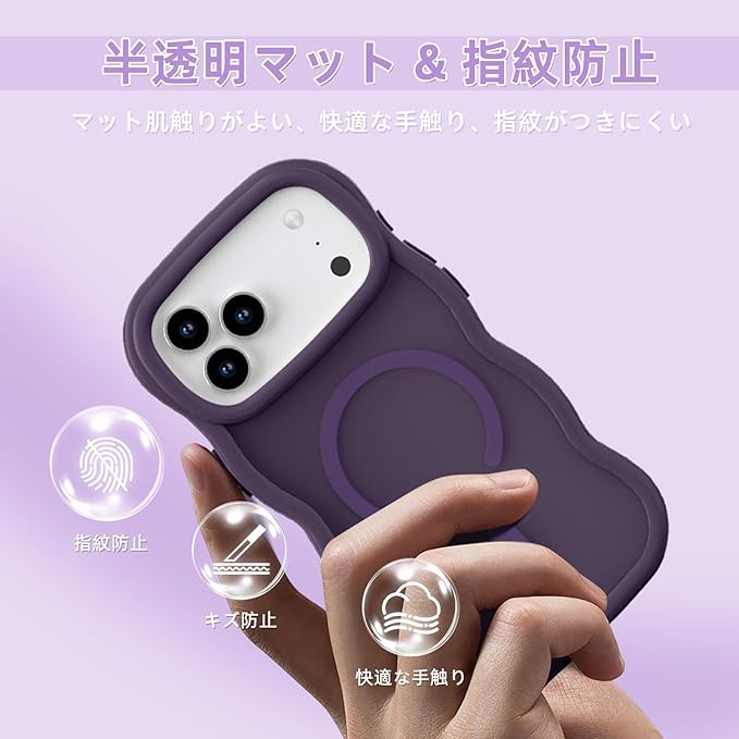 iPhone 17 Pro Max ケース MagSafe対応 耐衝撃 半透明 アイフォン17プロマックス ケース マグネット搭載 iPhone17 pro maxカバー 軽量 波形 薄型 マット感 指紋防止 滑り止め 軽薄型 PC背面TPUバンパー 黄変防止 米軍MIL規格 ストラップホール付き ワイアレス充電対応 アップル17 プロマックス用 (ダークパープル)