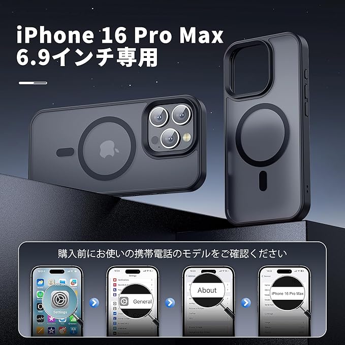 iPhone 16 Pro Max 用 ケース MagSafe対応 ワイヤレス充電 磁気ケース 耐衝撃性 米軍MIL規格の保護 傷に強い背面 6.9インチ