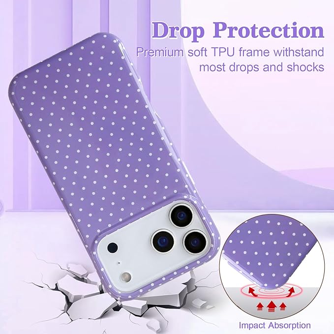EYZUTAK 対応iPhone 17 Pro Max用マグネットケース MagSafe用のファッション キュート 水玉模様 スマホケース シンプルでシックな美学の水玉模様 スリムTPU保護カバー 女性・女の子向け - パープル