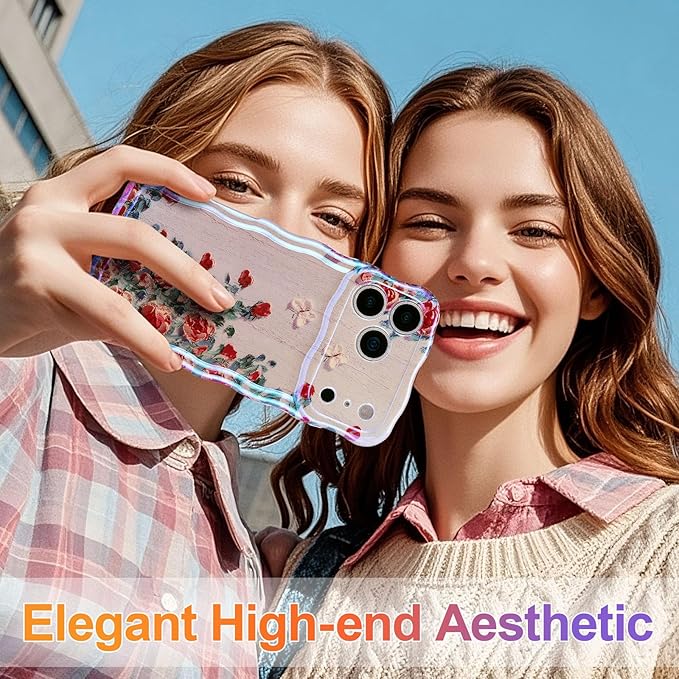 EYZUTAK ケース 対応 iPhone 17 Pro Max 用の 保護ケース柔軟なTPUカバー おしゃれ 可愛い 油絵の 花柄 薄型 軽量 カールボーダー携帯ケース 耐衝撃 スマホケース - ベージュ