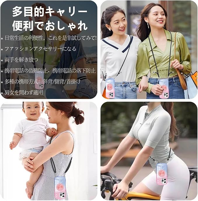 【互換性モデル】iPhone 17 Pro Max 適用 ケース。※ご注意:ご注文する前に、必ずお買い求めの機種とカラーを確認してください。 【MagSafe ワイヤレス充電・スピーディー且つ自由な充電体験】iPhone 17 Pro Max 用ケースには高度な MagSafe 磁気吸着ワイヤレス充電機能が搭載され、利便性の高い充電体験を新たな次元に引き上げました。正確な磁気吸着で位置決めが完了し、「貼り付けるだけで充電開始」となり、煩わしい差し込み操作を廃し、充電プロセスをスムーズに実現します。さらに高性能ワイヤレス充電技術により、安定的かつスピーディーな給電を確保しており、日常的な充電補給から緊急時の持続稼働まで幅広いニーズに柔軟に対応可能です。自宅でのゆったりとした時間、オフィスでの休憩時間、それに旅先での移動中など、あらゆる場面で MagSafe ワイヤレス充電機能がシームレスに適応し、途切れることのない電力サポートを提供し、テクノロジーがもたらす快適さと効率を存分に楽しんでください。 【全面保護】優れた保護性能,耐久性に優れた、傷がつきにくい,衝撃吸収性の高いTPU素材,衝撃やキズ、埃などからしっかりとスマホの背面を守ります。で落下衝撃から本体をしっかりと守ってくれます。フチをわずかに高く設計することで、日常生活の消耗に耐えしっかり保護できる、スマホへの傷つけを防止します。スマホを落としてしまっても衝撃を最小限に抑えるケース。専用にオリジナル設計しているためぴったりとフィットし、保護性能には欠かせないポイントとなっています。 【長さ調整可能 & ストラップの脱着が1秒で可能】調節可能なストラップにより、サイド、またはフロントに持ち運べるときに完璧にあなたの隣に掛けることができます。 このアクセサリーはファッションだけでなく、通常のストラップよりも快適で実用的です。それらは非常に耐性があり、湿気を吸収せず、無臭で乾燥しています。 それはあなたの手に自由を与えます。 ネックストラップはお好みの長さに調節できます。ストラップはいつでも取り外して身につけることができます、好きなように着こなす。